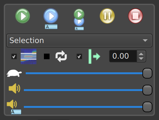 - Selction: Play the region selected by clicking and dragging on the spectrogram or timeline. If no region has been selected, the audio visible in the window will be played.